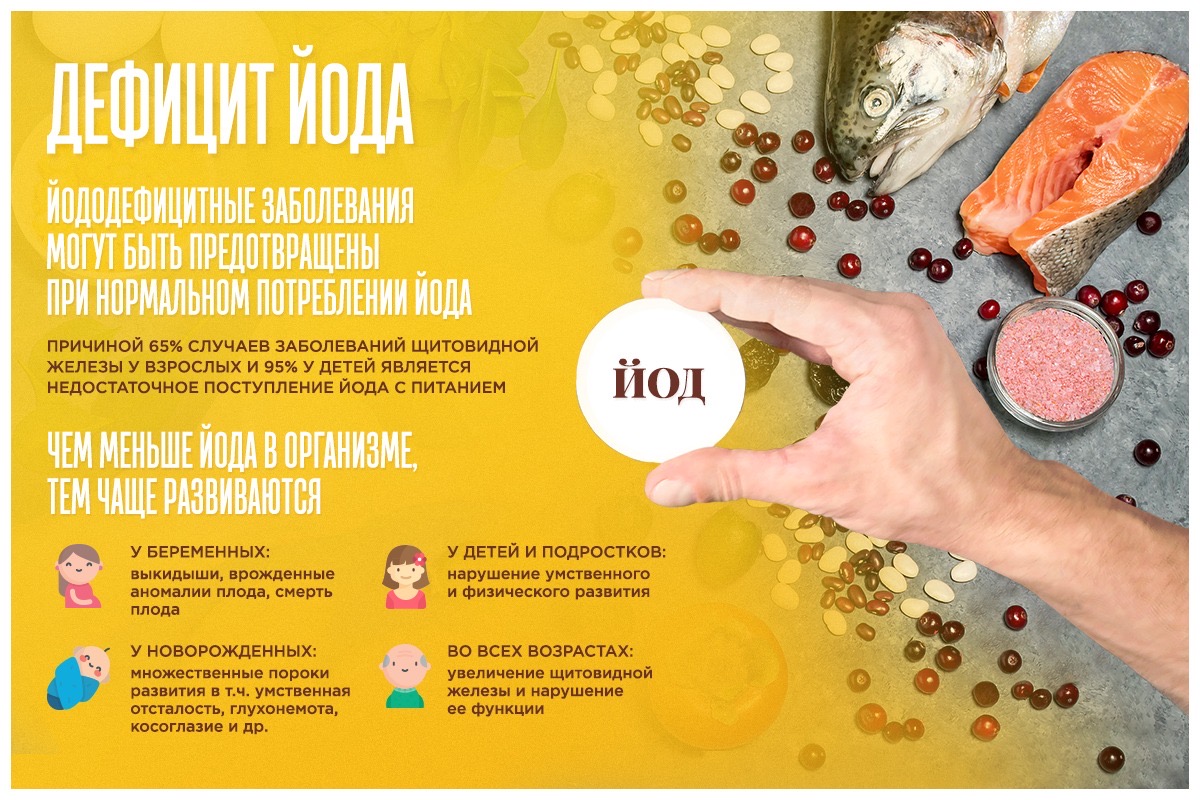 Подробнее о признаках дефицита йода, продуктах, в которых он содержится, а также о правилах йодной профилактики читайте на федеральном портале «Так здорово!» в статье: https://www.takzdorovo.ru/stati/defitsit-yoda-pitaytes-sbalansirovanno/