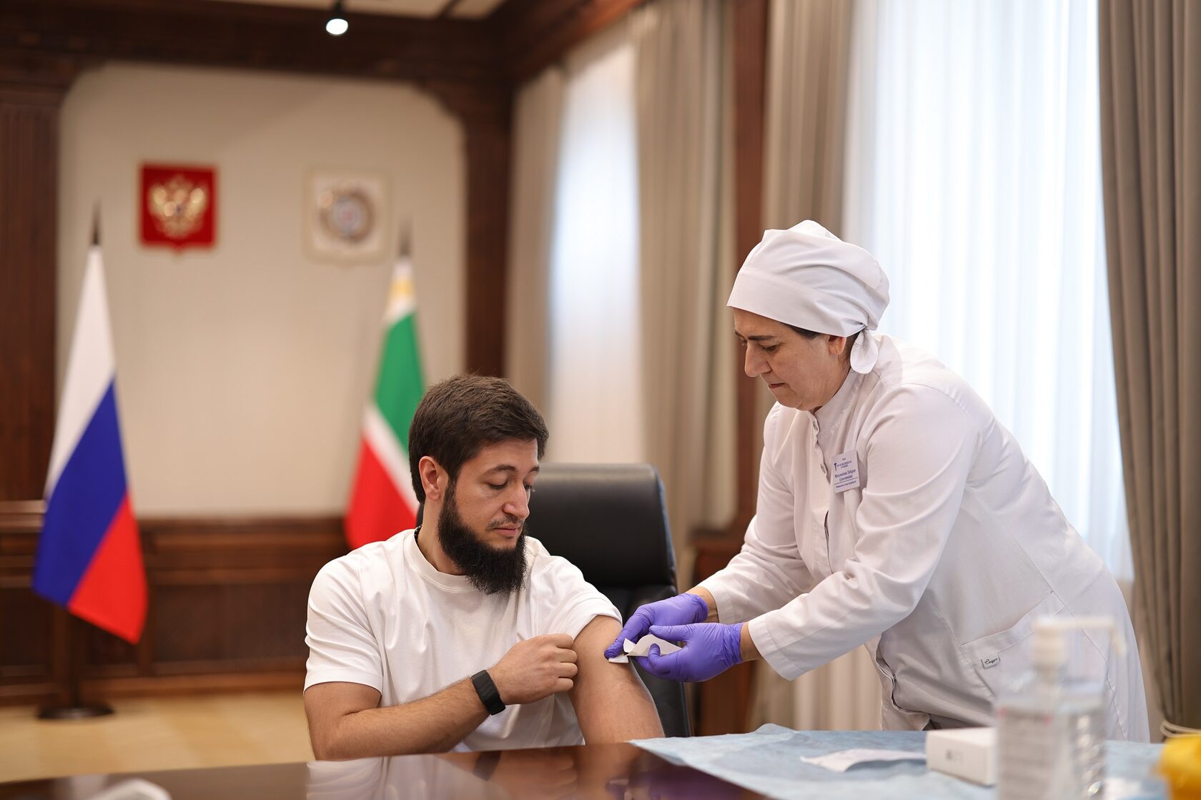 Министр здравоохранения ЧР Адам Алханов объявил о начале ежегодной прививочной кампании против гриппа. В соответствии с традицией руководитель ведомства прошёл вакцинацию первым. К инициативе Министра присоединились его заместители и сотрудники ведомства.
